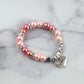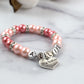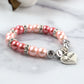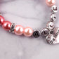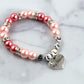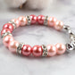 This Big Sister Bracelet is an elegant and classy bracelet that she will love as a gift! It consists of her name spelled out with silver acrylic beads, 8mm glass pearls in the color Coral + Blush, Brass Grade AAA rhinestone spacers with a Big sister silver charm.
