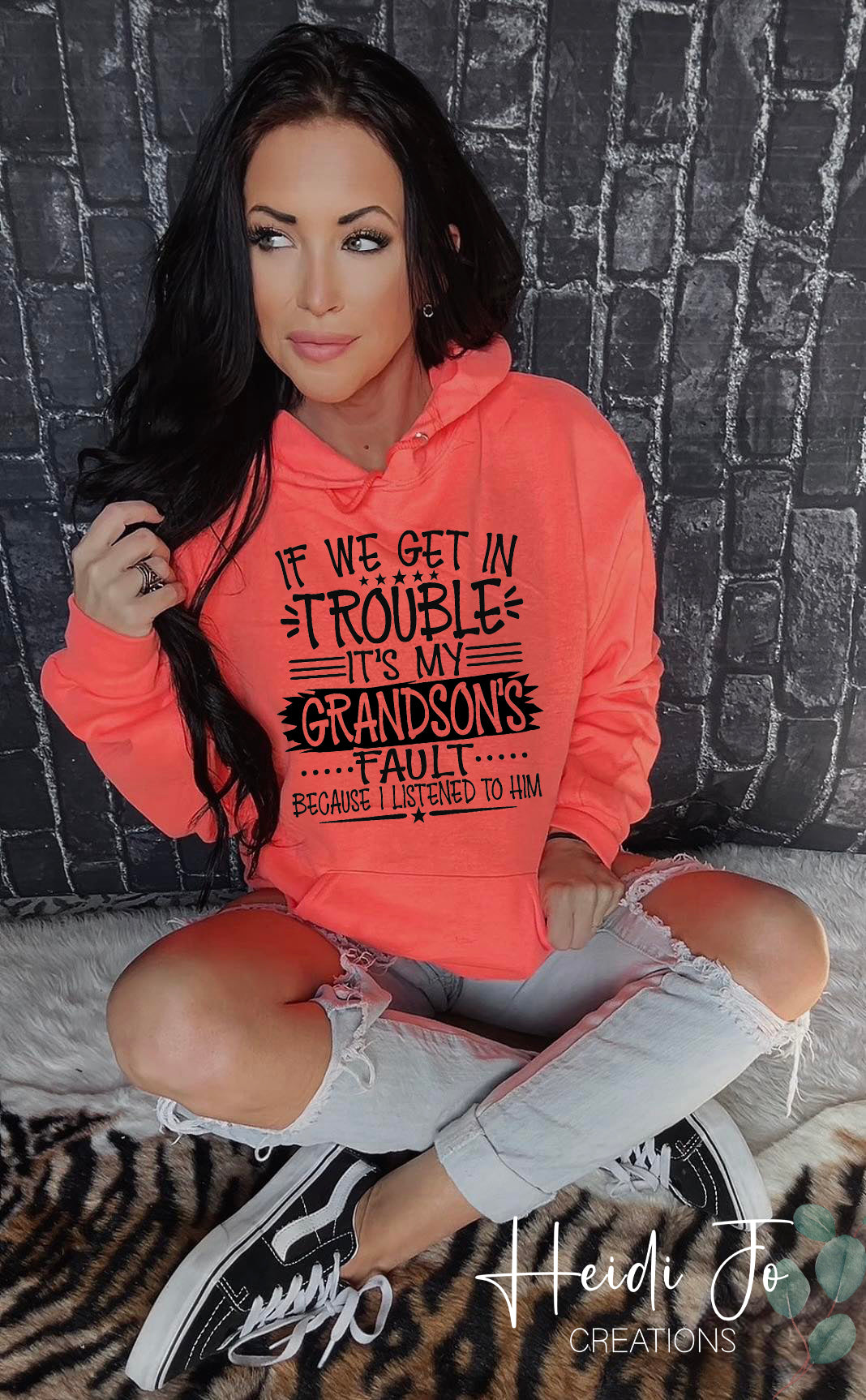 Take the blame off your shoulders with the Grandsons Fault sweatshirt for Grandma. With its quirky text and playful tone, this sweatshirt is perfect for the grandma who doesn't take herself too seriously. Whether it's a little mischief or a big debacle, you can always blame it on your mischievous grandson with this unique sweatshirt.