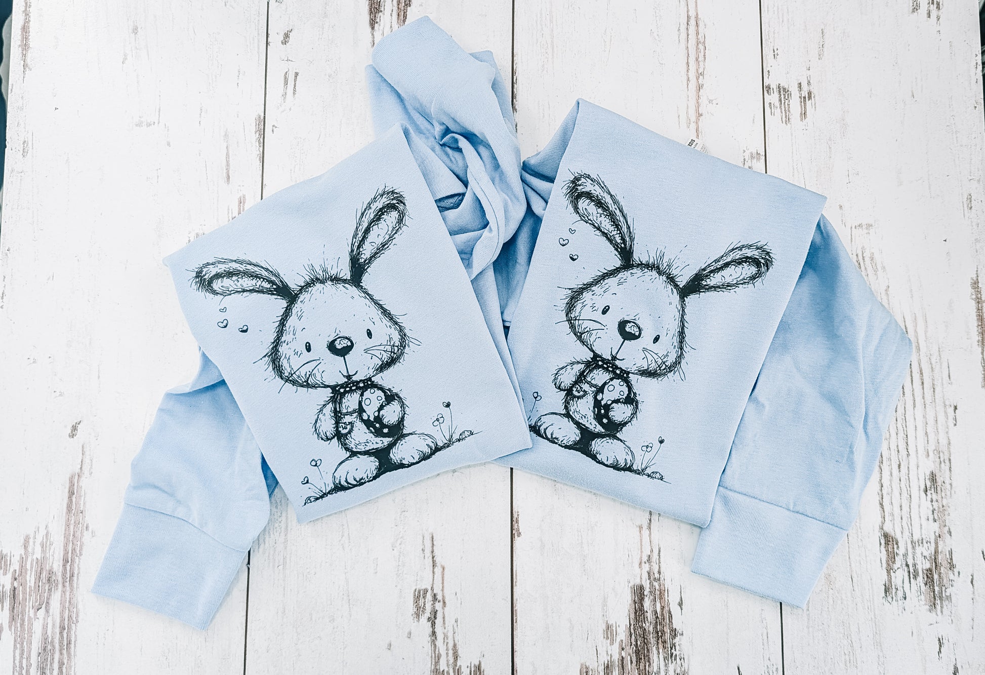 Hop into the holiday spirit with our Toddler Easter Long Sleeve Tee! This adorable blue shirt features a cheeky Easter bunny ready to bounce into your little one's wardrobe. Perfect for egg hunts and jelly bean feasts—because who doesn’t want to look egg-stra cute while hunting for candy? (Warning: may cause excessive cuteness!)